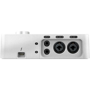 - Interfaz de audio Thunderbolt 3 con 2 entradas analógicas y 2 salidas analógicas, más 1 entrada de instrumento y una salida de auriculares estéreo.